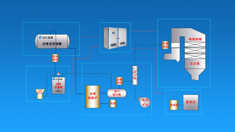 SCR脫硝工藝過程是液氨罐(約1.6MPa G)中的液氨(約1.6MPa G)通過壓力調(diào)節(jié)閥降壓至0.2-0.6MPa G,進(jìn)入氨蒸發(fā)器蒸發(fā)器。在氨緩沖罐之后,壓力和流速和稀釋空氣在混合器中均勻混合。最后,將噴霧氨格柵注入煙道和SCR反應(yīng)器中。進(jìn)行脫氮反應(yīng)。